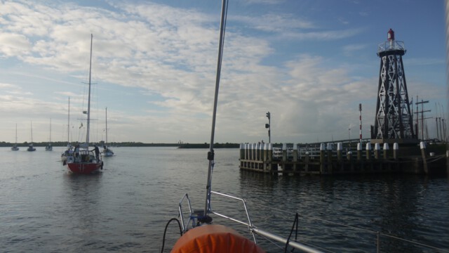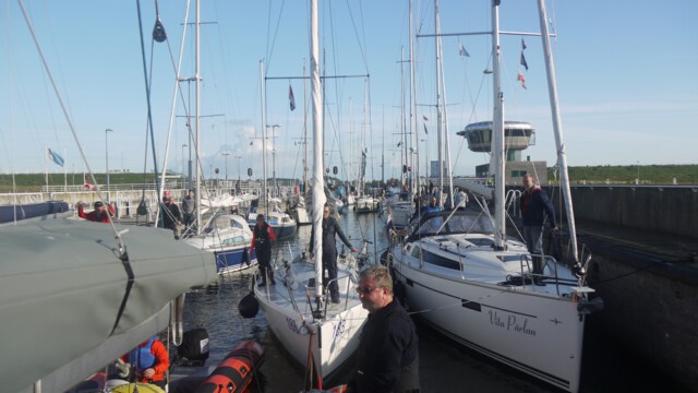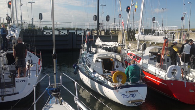Samstag mussten die Teilnehmer-Schiffe zunächst in Enkhuizen die Naviduct-Schleuse in Richtung Markermeer passieren, bevor es für alle auf die Langstrecken-Wettfahrt Richtung Lelystad ging.